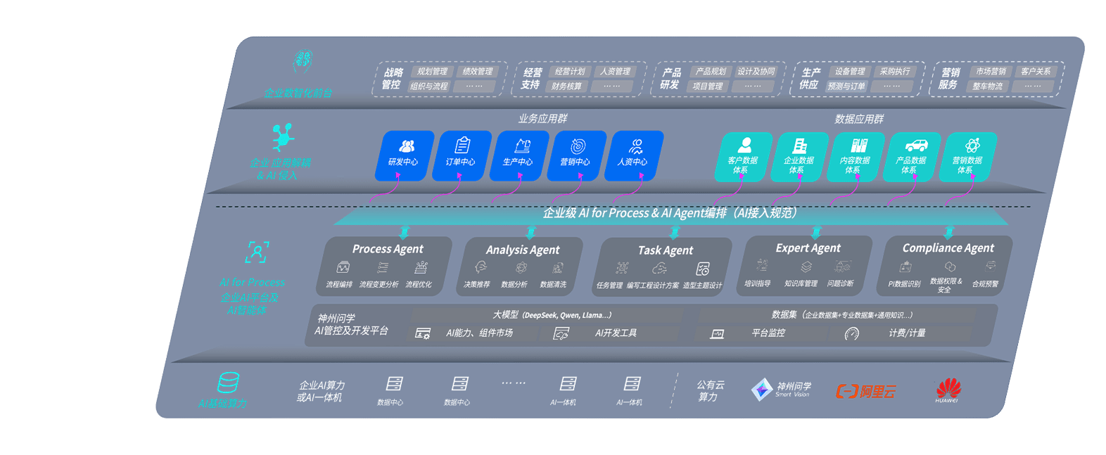 梦之城问学智车解决方案是一套基于AI技术的汽车行业智能化系统,,,,覆盖从底层算力到顶层AI应用的全栈方案。。。。方案由算力层、、、模型层和应用层组成:算力层,,方案支持多种一体机配置,,具备云端灵活部署、、、多云适配以及动态优化计算资源的能力;模型层,,,,梦之城问学平台版提供了企业级AI应用一站式构建与管理平台,,支持基于后训练强化技术的汽车企业专属模型的训练、、、、评测和运营;应用层,,,梦之城问学DeepSeek版提供包括超级员工、、、智能招采、、、智能营销、、、智能客服、、AI for BI等一系列解决方案,,可助力汽车行业实现数字化转型,,,,让管理更智能、、、响应更敏捷。。。。